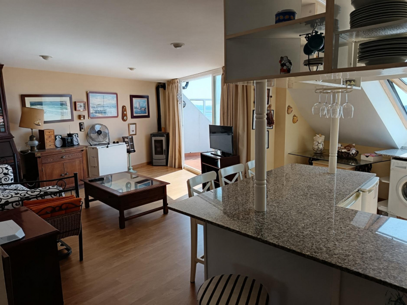 Spectacular penthouse in Sanxenxo that offers unique and unbeatable views of the entire Silgar beach, allowing you to enjoy the beauty of the sea from the comfort of your home. Located a few meters from the beach and very close to the center, you will have everything you need at your fingertips. In addition, it has a bus stop and public parking right next to the portal.~~The penthouse has 90 m² built, distributed in 2 bedrooms, 2 bathrooms (one of them en suite) and a kitchen integrated in the living room with breakfast bar. The fantastic terrace is ideal for sunbathing or simply relaxing while contemplating the views. The design details, such as the sloping ceilings, add a special touch to this home.~~It includes a convenient parking space in a recently built parking garage, located on the second floor. The building has an elevator and the penthouse is located on the 6th floor, being exterior and offering excellent luminosity. With fitted closets, heating and in good condition, this penthouse is the perfect choice for those looking for a cozy and well located home.~~Do not miss the opportunity to live in one of the most privileged places in Sanxenxo, contact us for more information and come and visit it!