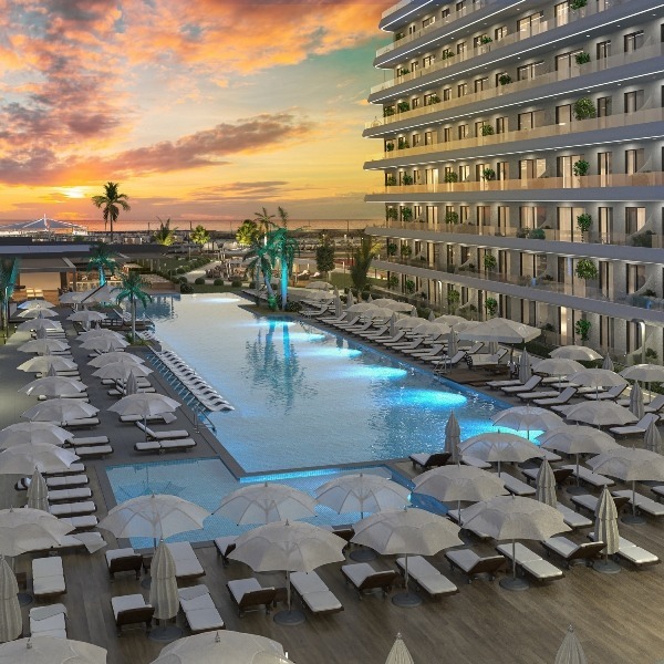 Situated frontline to the sea in the up-and-coming coastal region of Gaziveren, this exceptional development offers a unique blend of residential comfort and hotel-style living. Boasting direct access to a beautiful sandy beach, the project is perfectly positioned to capture breathtaking panoramic views across the Mediterranean coastline.