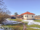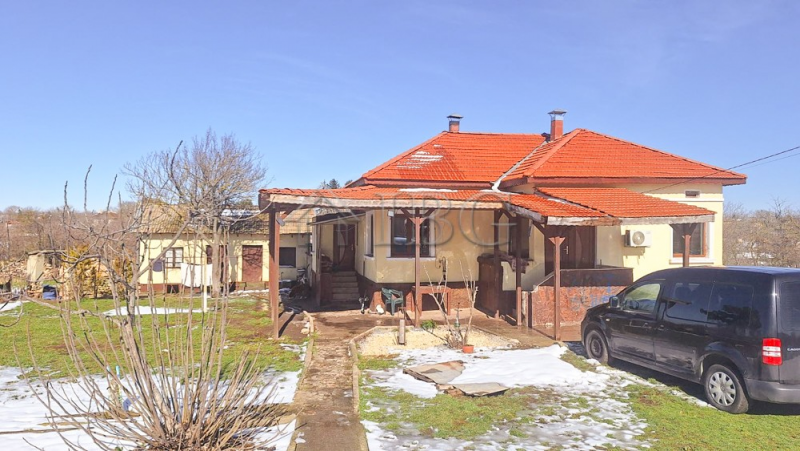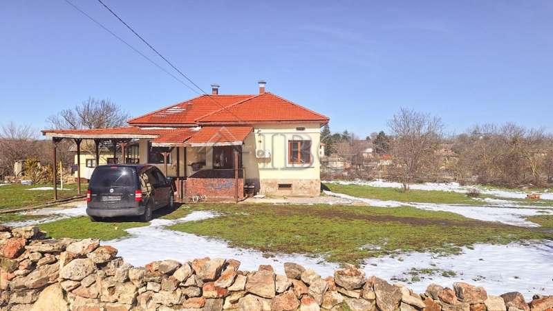 The house has been renovated with a new roof, replaced window frames, Venetian plaster finishes, terracotta flooring, and laminate flooring. One of the rooms features a suspended ceiling, adding a modern touch to the interior. The property is surrounded by a solid, massive fence, ensuring privacy and security.