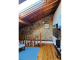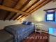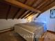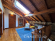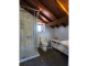A wooden staircase rises from the living room to a spacious landing with a Velux window, filling the area with natural light. From here, two further bedrooms are accessed, both featuring wooden floors and charming beamed ceilings perfect as guest rooms, children's rooms, or a home office. They share a family-sized bathroom with sleek tiled floors, shower, sink, and WC.