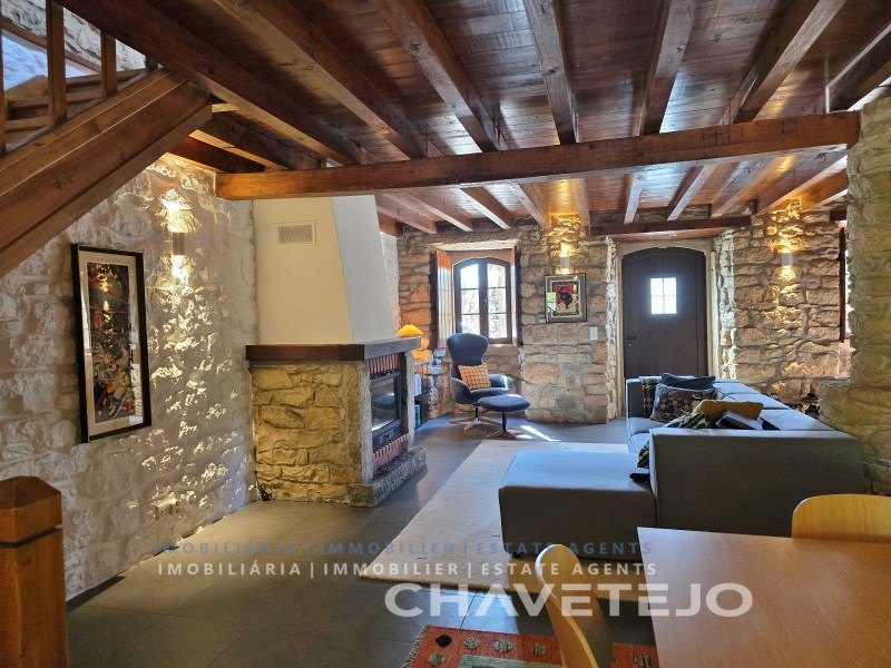 Tucked away in a peaceful setting yet only a short walk from the village of Chãos, this beautifully renovated three-bedroom stone cottage combines traditional charm with modern comfort. Set across two levels and offering 161 m² of living space, the home sits within 1,560 m² of landscaped gardens complete with a swimming pool.