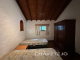The house features two bedrooms, an open-plan kitchen and living area, a hallway, a bathroom, and a garage fitted with an automatic gate. Its layout offers comfort, simplicity, and the warm character typical of rustic homes.