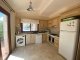 Fully equipped with a washing machine, fridge freezer, oven and hob, and a dishwasher, the kitchen also features a door that opens to the back side of the villa.