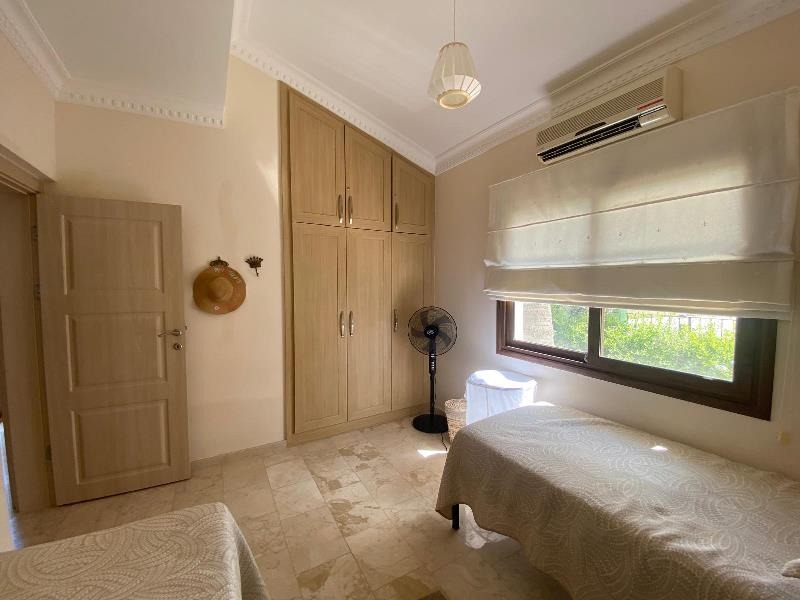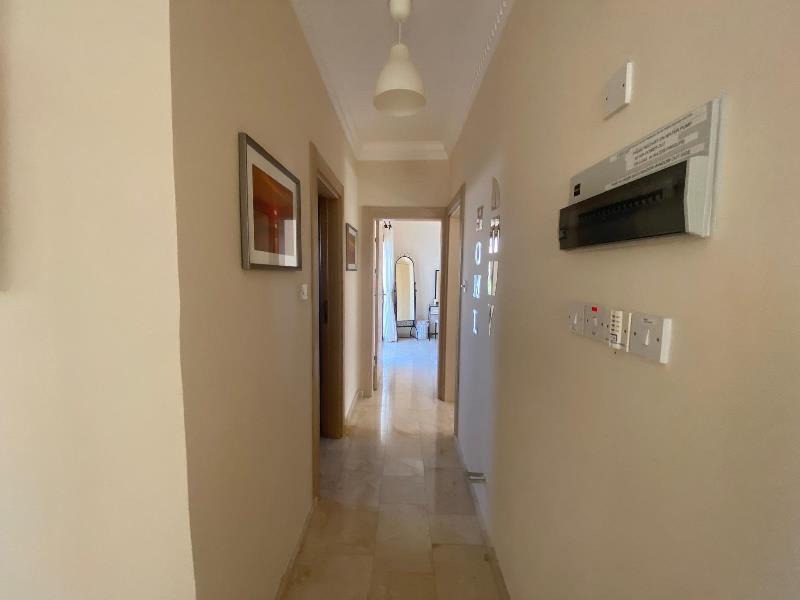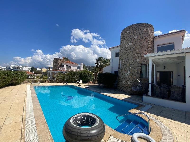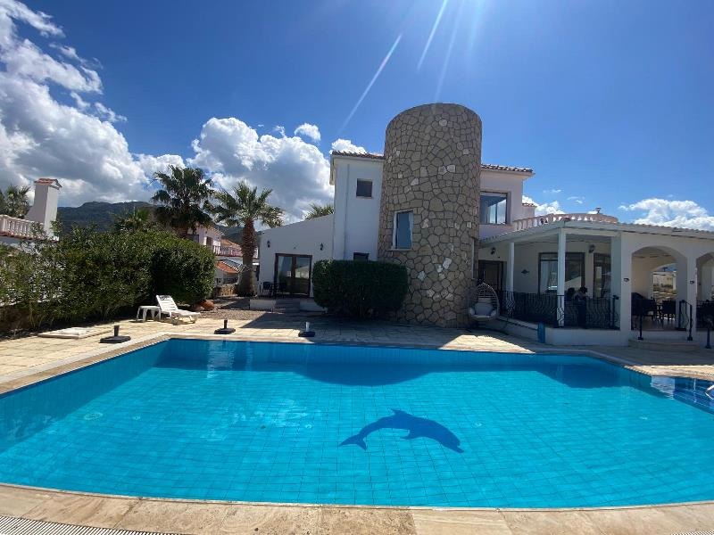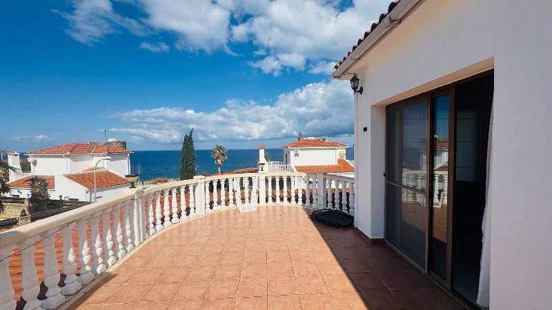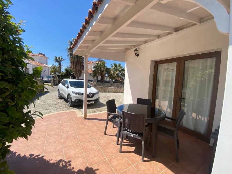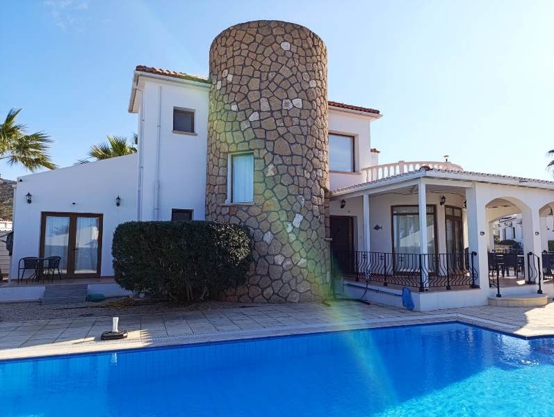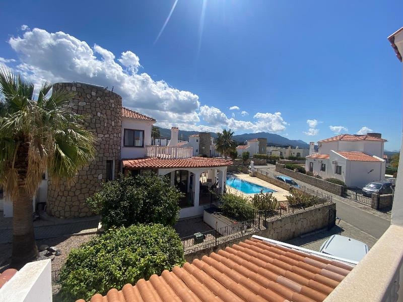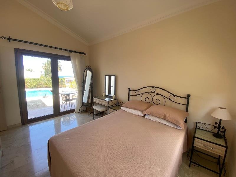 Located in the sought-after coastal region of Bahçeli, this beautifully maintained 3-bedroom, 2-bathroom detached villa sits just one row behind the seafront, offering an exceptional opportunity to own a home in one of the area’s most desirable locations. Upon entering, you are welcomed by a bright and airy foyer providing access to all ground floor rooms, including two spacious double bedrooms with built-in wardrobes, a family/guest bathroom, a fully equipped kitchen, and a separate living area. The generously sized lounge is enhanced by a charming fireplace, creating a warm and inviting atmosphere, while French doors lead onto an expansive covered terrace overlooking the private pool and garden—perfect for seamless indoor-outdoor living. One of the ground floor bedrooms also benefits from access to a quaint stone terrace with views over the private driveway. The master suite is elegantly positioned on the first floor for complete privacy, featuring a private en suite and direct access to an exceptionally large terrace boasting stunning sea views. Whether you are looking for a permanent residence, a tranquil holiday home, or a strong investment opportunity, this property truly offers the best of coastal living.