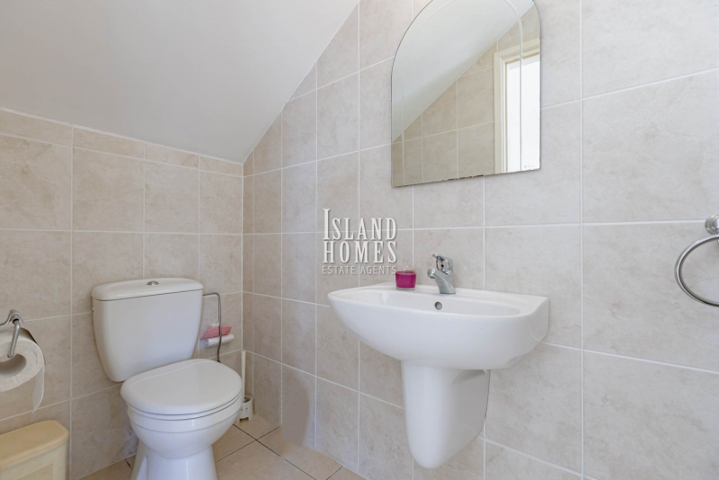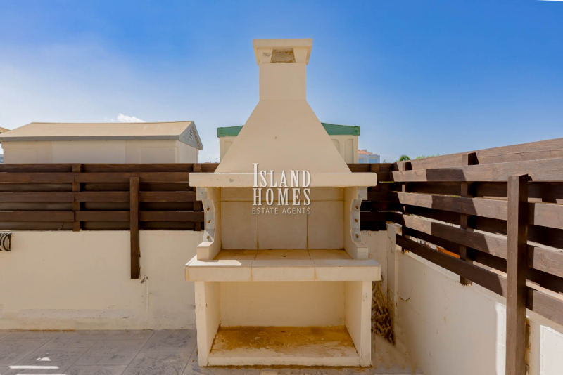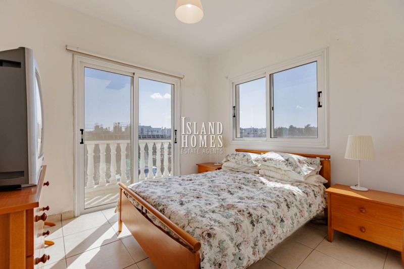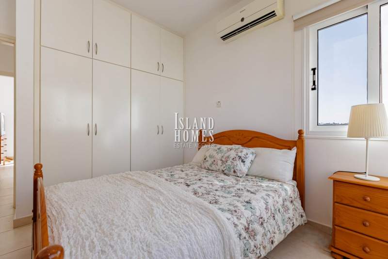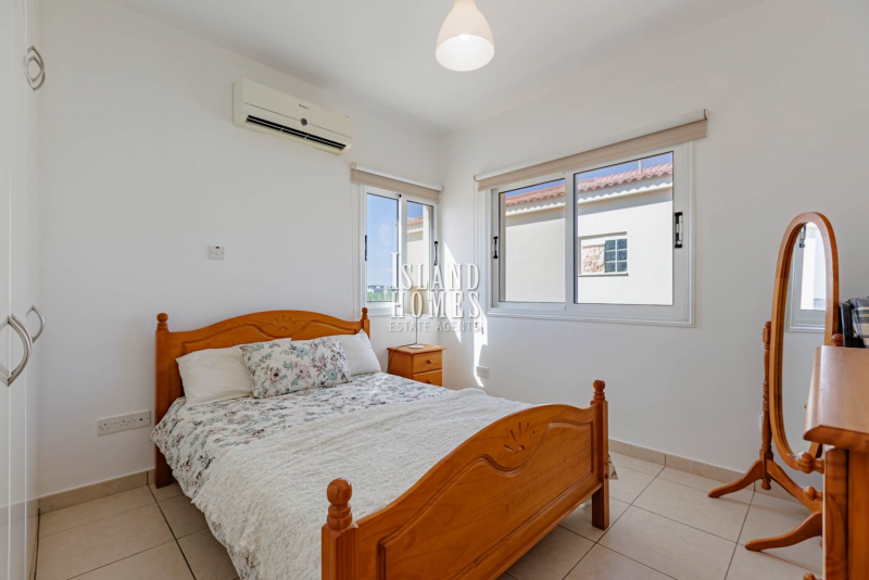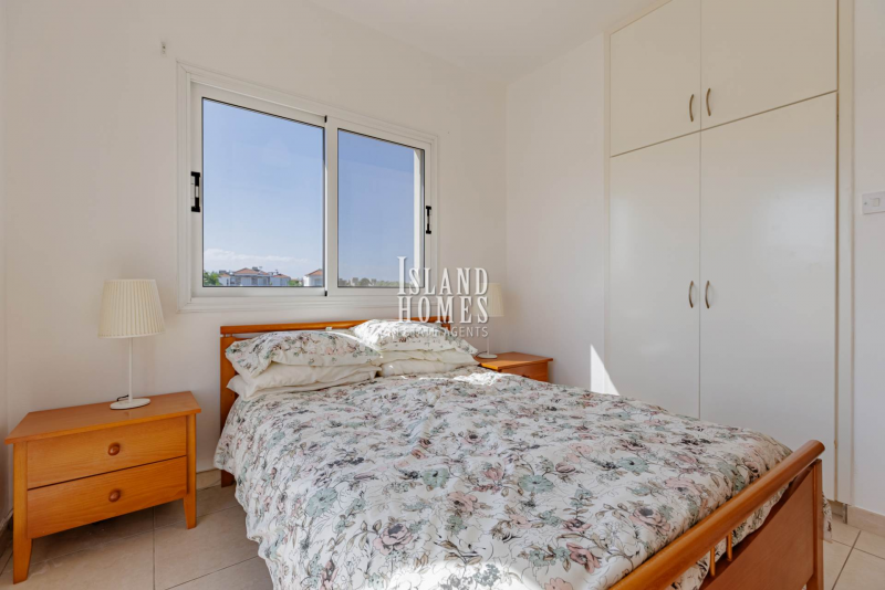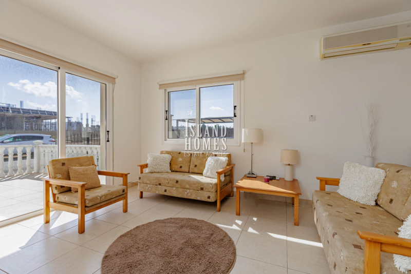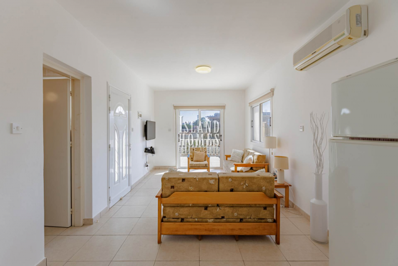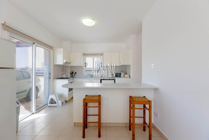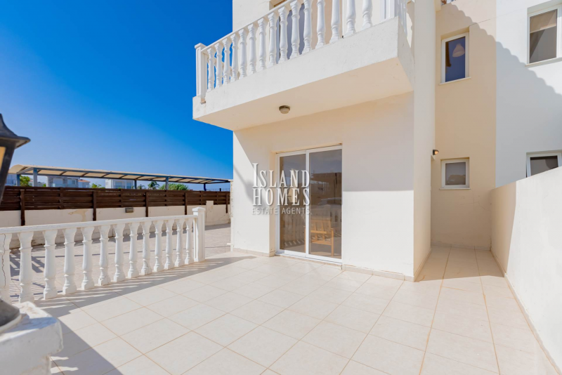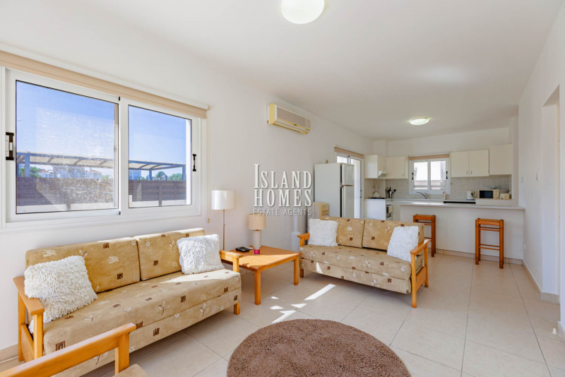This delightful property has location at the top of the list. The location is sensational, with the inviting beaches of Ayia Triada and Kapparis a mere 300m from your front door, you can be toes in the sand before your sun cream has time to dry. The gated entrance offers off street covered parking and a raised front veranda. The entrance door leads into an open plan kitchen, living and dining area. The living area features plentifully natural light with patio door access to the front veranda. The kitchen area includes a handy breakfast bar and also offers patio door access to the covered parking. There is also a ground floor guest WC.