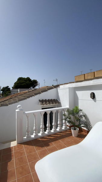 Duplex Just 30 Metres from the Beach in Santiago de la Ribera – Unbeatable Location~~This charming duplex is located just steps from the beach in one of the best areas of Santiago de la Ribera. Distributed over two floors, it features:~~Three bedrooms with large, fully fitted built-in wardrobes (with drawers and overhead storage)~~Two full bathrooms~~Fully equipped kitchen~~Patio, utility room, and terrace with sea views~~Built in 2009, the property has just been freshly painted and decorated – ready to move into with no renovation needed.~~???? Ground Floor:~~One double bedroom with TV~~Spacious living-dining room with air conditioning and TV~~Fully fitted bathroom~~Kitchen with ceramic hob, oven, and microwave~~Kitchen leads to a patio with a covered summer dining area (with awning), utility room, and outdoor shower~~????️ Upper Floor:~~One single bedroom~~One full bathroom~~One double bedroom with access to a terrace offering sea views~~All three bedrooms include lined wardrobes with drawers and overhead compartments.~~???? Optional closed garage available just 100 metres from the property.~~This is a move-in ready home just a few steps from the sea, perfect as a holiday home, investment, or year-round residence.~Contact us today to arrange a viewing!
