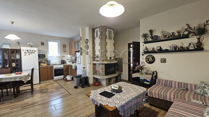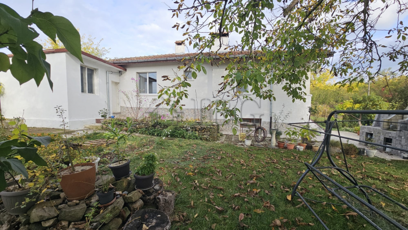 The house is built on a large and well-maintained plot of 940 sq.m., featuring fruit trees, ornamental plants and a cozy veranda for relaxation.Inside, it offers a spacious living room with fireplace, combined with kitchen and dining area, two bedrooms, a bathroom and a walk-in closet.There’s also a garage with storage space, a dry basement and a heating system with radiators, powered by the fireplace’s water jacket system.