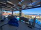 A bright and spacious living room with a working fireplace and air conditioning, ideal for year-round comfort. Two sets of double windows flood the space with natural light — one overlooking the sea and pool, the other framing beautiful mountain views.