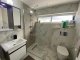 The suite includes a shower unit, WC and wash basin with vanity unit