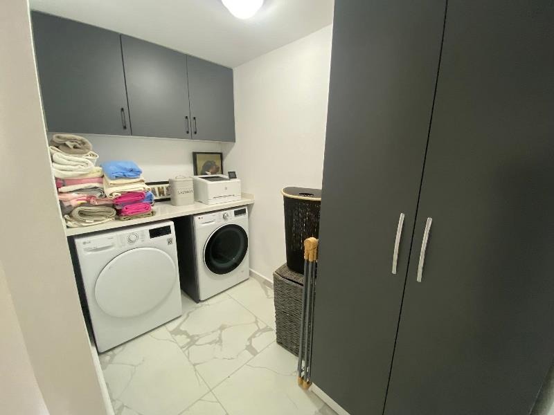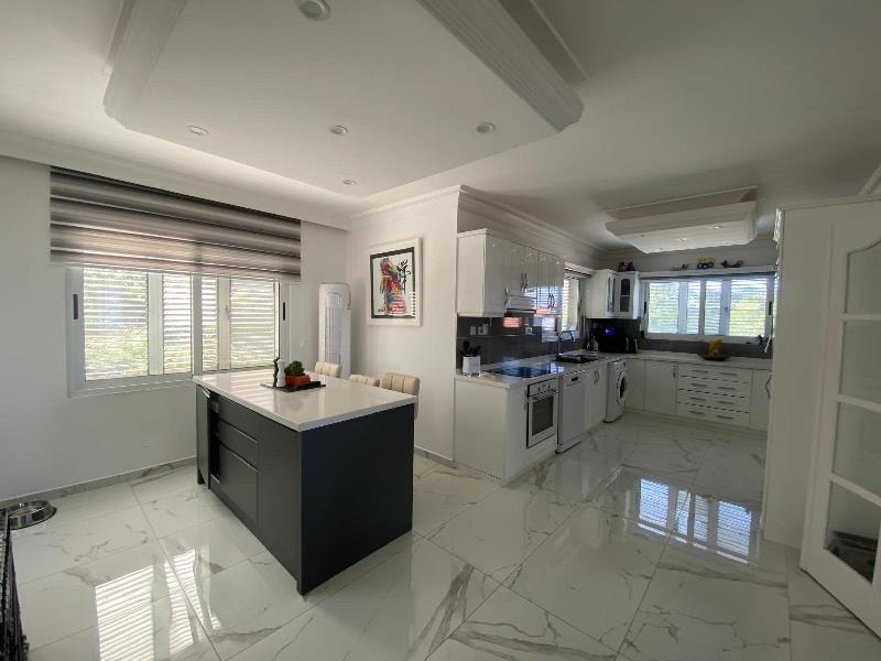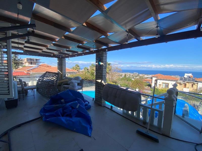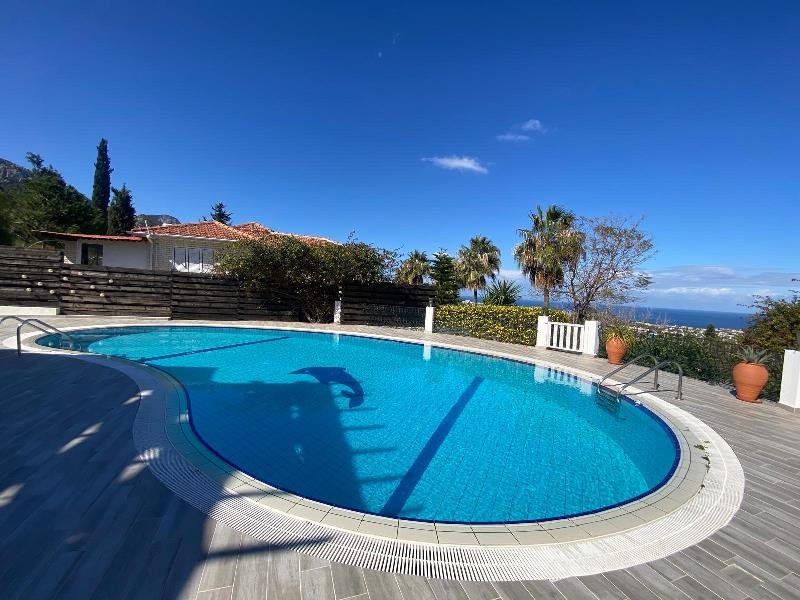 Two expansive terraces further enhance the upper level — one accessed from the lounge with stunning views of the Mediterranean Sea and pool area, and the other from the dining area overlooking the impressive Kyrenia Mountains. These outdoor spaces are perfect for relaxing, entertaining, and enjoying the surrounding scenery.