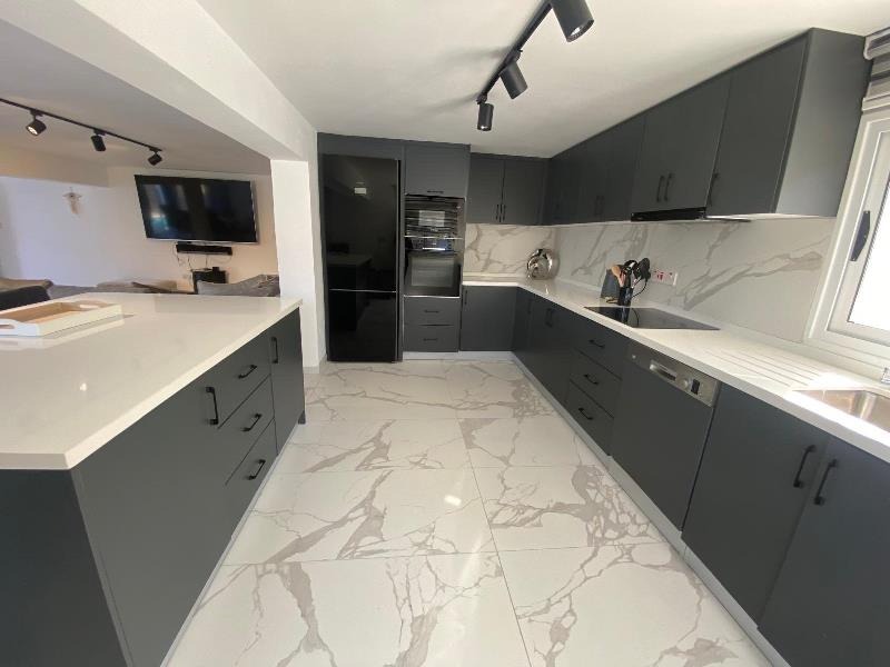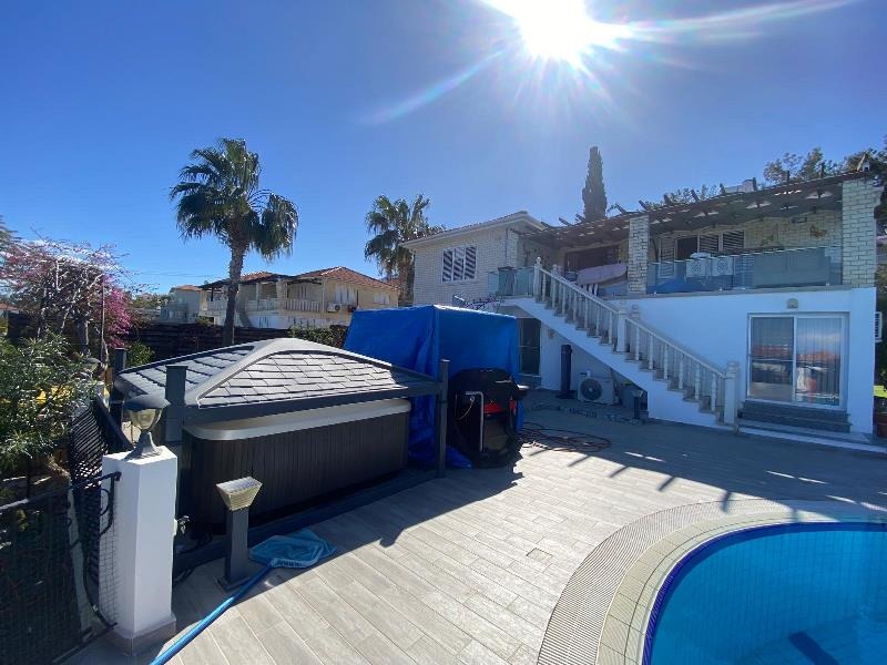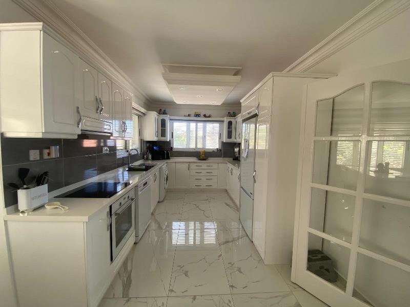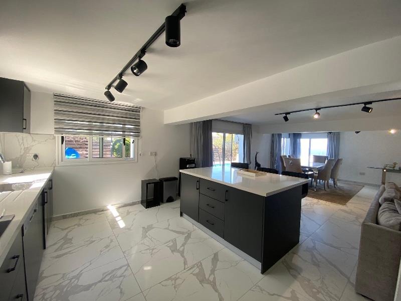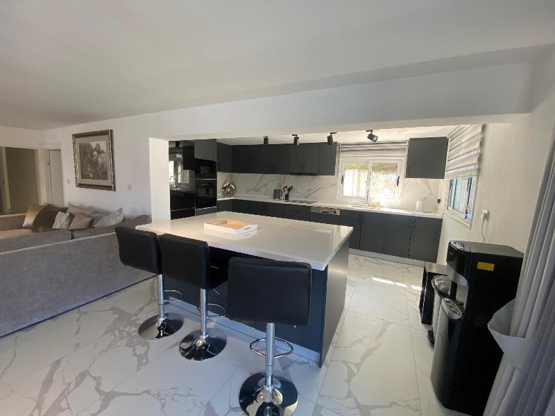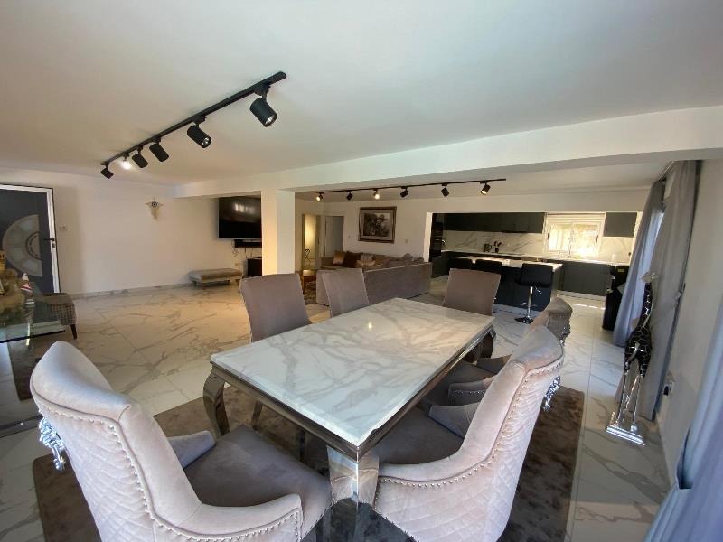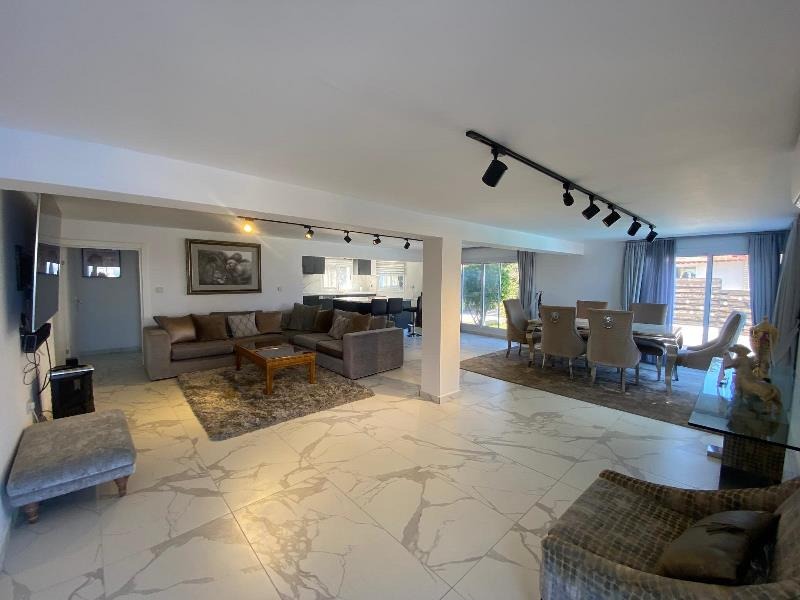 The exterior is equally captivating, perfectly designed for a true Mediterranean lifestyle. Set on a generous 1 donum plot, the villa is surrounded by beautifully landscaped gardens with mature, fruit-bearing trees including olive, orange, lemon, and pomegranate. A large kidney-shaped swimming pool takes centre stage, creating a private oasis of colour, scent, and serenity — ideal for soaking up the sun and enjoying long, warm evenings outdoors.