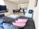 Large and bright living room with dining area and fully equipped kitchen