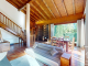 The chalet was constructed in the 1980s and benefits from modern architecture, including high ceilings and maximising natural light with large windows and doors opening onto the garden and showcasing the surrounding mountain scenery.