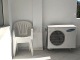 Bathroom with bathtub, WC, mirror, dressing mirror, and hairdryer