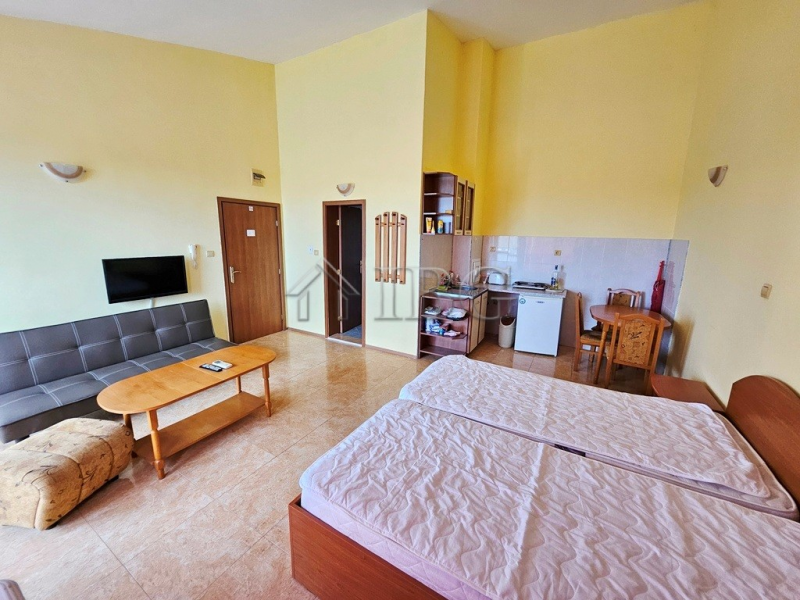 We offer for sale a 48 m² studio apartment located on the 4th floor in Apart Hotel Elit 3, Sunny Beach. The property is ideal for a holiday home or rental investment thanks to its excellent location near the popular Cacao Beach. The studio is spacious, well-situated within the building, and provides easy access to all resort amenities. Maintenance fee is €6/sq.m.