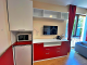 Layout: Entrance hall, spacious room with kitchen & sleeping area, bathroom with shower & toilet, terrace with view to the green areas.