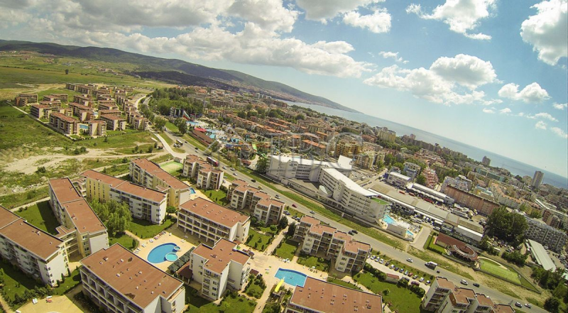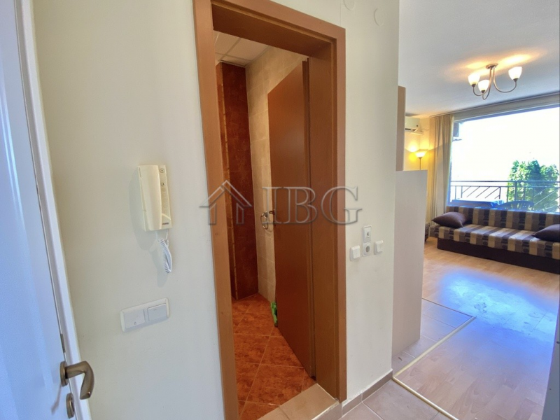 IBG Real Estates offers for sale a furnished studio in the popular Holiday Fort Noks complex, ideally located next to the Aqua Park and just a short walk from the beautiful 8-km sandy beach of Sunny Beach. The complex is situated in a quiet area, away from the busy center and offers everything needed for a comfortable holiday or year-round living.