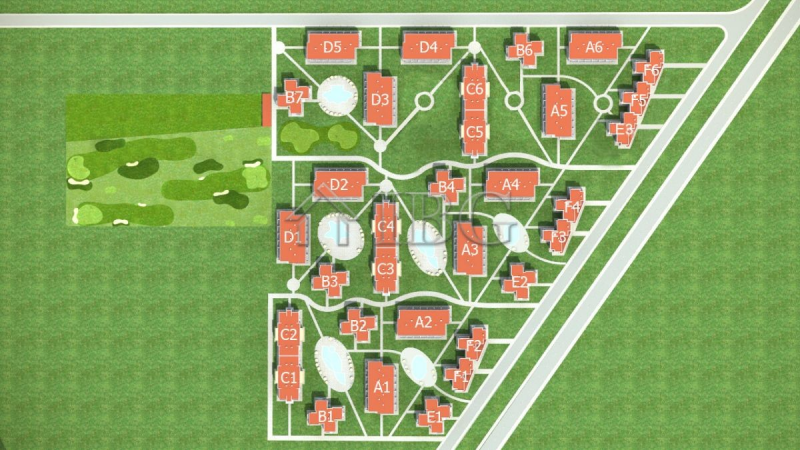 Landscaped green lawns