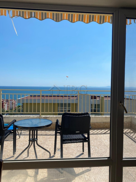 The apartment has a total area of 47 sq.m. and is located on the 6th floor in a building with elevator. It consists of an entrance hall, a spacious room with kitchen and living area, a bathroom, and a large balcony with sea view. The property is sold with new furniture and appliances and can accommodate up to 4 people.