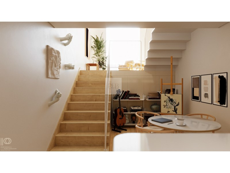 Spacious 95.3 m² mezzanine apartment in a fully rehabilitated former Port wine warehouse, right on the Douro River.