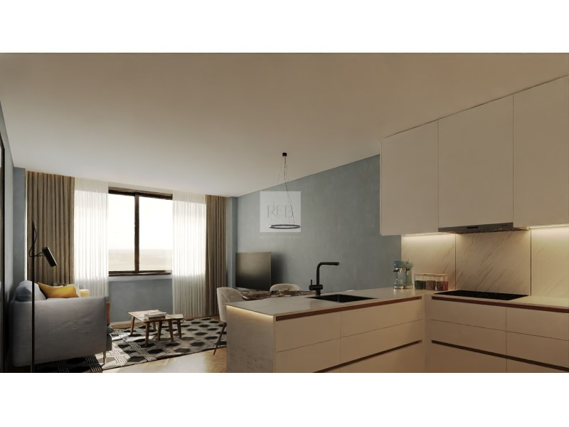 With 113 m² of total area, it features a bright open-plan living room with kitchen, two large bedrooms, and high-quality finishes throughout.