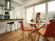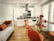 Open-plan kitchen and living room with a total area of 30 sqm, opening onto a 10 sqm open balcony with views over the Benfica woodland area.