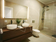 Three bedrooms: the first bedroom with 15 sqm and built-in wardrobe; the second bedroom also with 15 sqm and built-in wardrobe; and a master suite with 20 sqm and built-in wardrobe. Two full bathrooms with wall-hung sanitary ware.