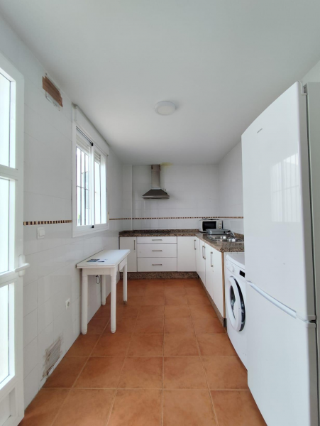Two-storey townhouse in Pilas, perfect for enjoying comfort and tranquillity near Seville.~~The ground floor features a spacious living-dining room with direct access to a small terrace, a fully fitted kitchen with appliances and an office area, as well as a rear patio ideal for gatherings or barbecues. Additionally, there is a guest toilet for added convenience.~~On the first floor, there are three bedrooms (two of which are doubles) and two full bathrooms, one of which is en-suite with a bath and shower in the master bedroom, which also has a balcony.~~Thanks to its south-facing orientation, the house enjoys excellent natural light. Located in a peaceful residential area, with all amenities nearby and excellent road and bus connections to Seville.