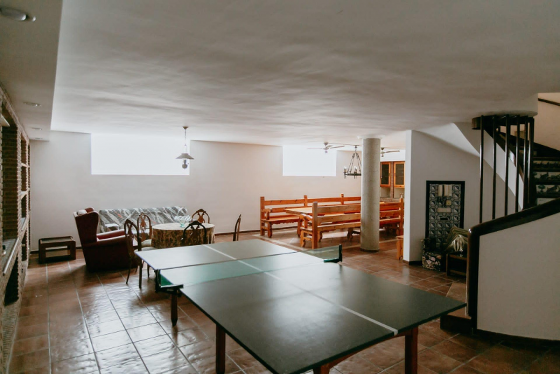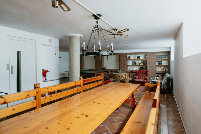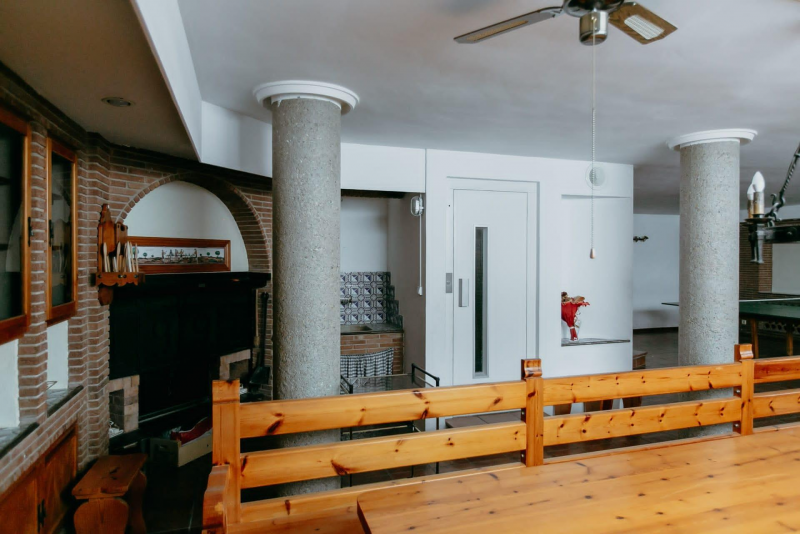 Detached house in Huesca, very spacious, with an incredible wine cellar, bright, several terraces, private lift. ~On the semi-basement floor there is a large cellar, with a fireplace, wooden table for more than 20 people, recreational area, a toilet and 2 pantries. ~On the ground floor there are 2 garages, a storeroom, and an office that could be the 5th bedroom, and another of the jewels of the house which is its garden with a glazed porch. ~On the first floor there is a kitchen, another toilet and a magnificent living room with access to another large terrace. ~On the second floor there are 4 bedrooms and 2 bathrooms. ~And on the ground floor-roof there is a diaphanous attic, with a laundry room and 2 terraces. ~The house has several singular elements, such as the wine cellar, piped music or a decoration of Muel ceramics representing all the stages of wine production.