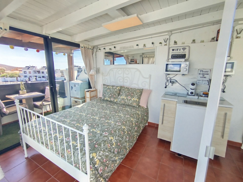 Top floor: On the highest level, there is a small independent apartment, ideal for tourist rentals, featuring a private terrace with jacuzzi, American kitchen, shower room, and a balcony with spectacular views of Isla de Lobos and Lanzarote. This apartment has a tourist rental license, making it an excellent investment opportunity.