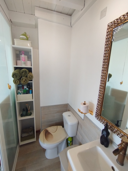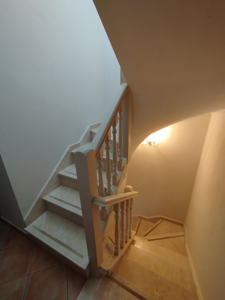 Ground floor: Upon entering the property, you’ll find a charming front garden leading to a spacious hallway. The bright and airy living-dining room opens onto a 66 m² back garden. The fully equipped independent kitchen includes a guest toilet and two additional storage rooms for convenience.