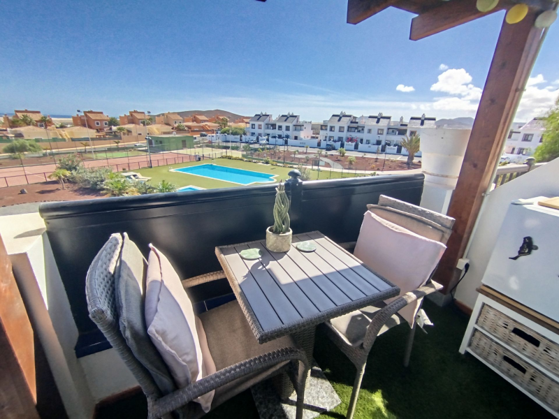 Impressive three-story villa in the exclusive Marina Village complex, with independent apartment and panoramic views of Isla de Lobos and the communal swimming pools.
