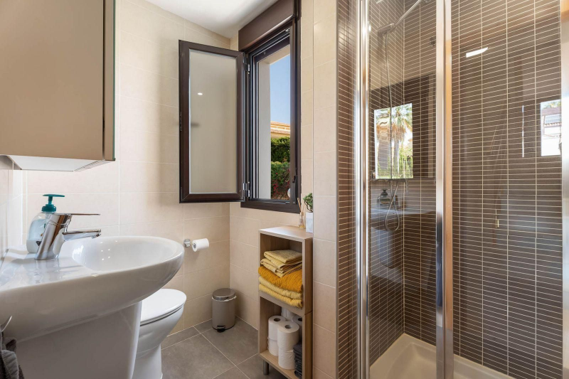 La casa cuenta con tres dormitorios distribuidos en diferentes plantas, asegurando comodidad y privacidad para toda la familia. En el primer piso, encontrarás un dormitorio con baño completo, mientras que el ático ofrece un tercer dormitorio con vistas espectaculares y total intimidad. Además, el sótano se convierte en un espacio de ocio perfecto, con luz natural, lavadero, trastero y aseo.