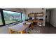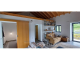 The upper floor features a large kitchen-diner (22.7 m²) with a good range of fitted cupboards and drawers. The kitchen includes an integrated electric oven, gas hob, microwave, and dishwasher. The room has a vaulted ceiling, a large solar-filmed window area, and double doors opening onto a spacious patio.