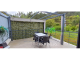 The patio has space for a large retractable sun awning and is screened from the road for privacy.