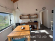 Above the bedroom, shower room, and staircase is a mezzanine floor (16 m²). The lounge enjoys windows on three sides and double-glazed doors opening onto a balcony.