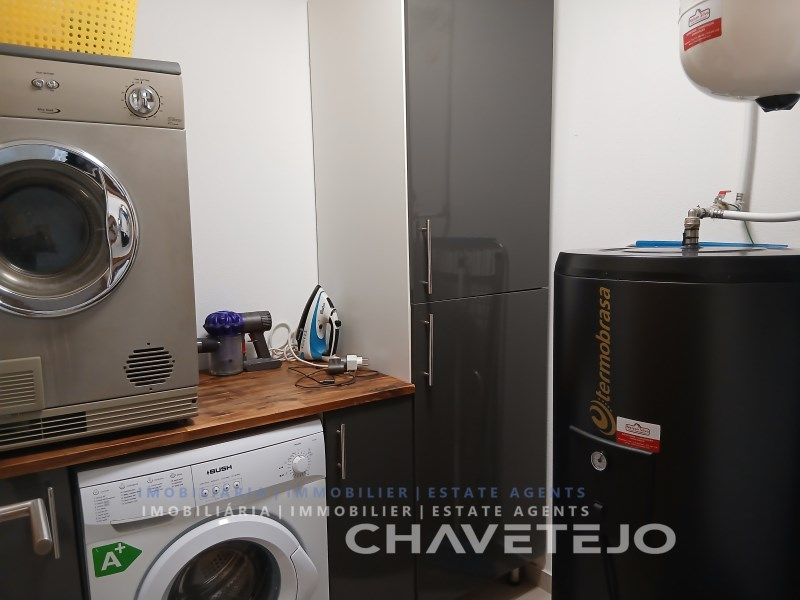 Laundry room: 3.7 m² with storage units, washing machine, tumble dryer, and solar hot water system