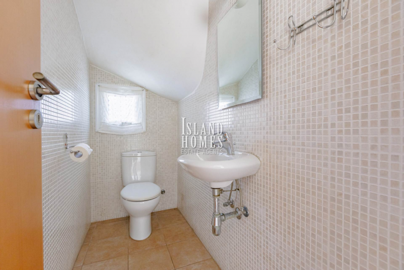 Located on a popular complex in a quiet area of the village, this is a fantastic opportunity to purchase a 3 bedroom property. The gated entrance to the front of the property leads to a large terrace, from here the entrance door flows into an open plan layout of kitchen, living and dining area. The spacious ground floor incorporates two sets of patio doors from the living area to the front veranda as well as direct access from the dining area to the rear of the property. The kitchen is a wide galley style and includes patio doors to allow plenty of natural light to flood in. The ground floor also benefits from a handy guest WC.