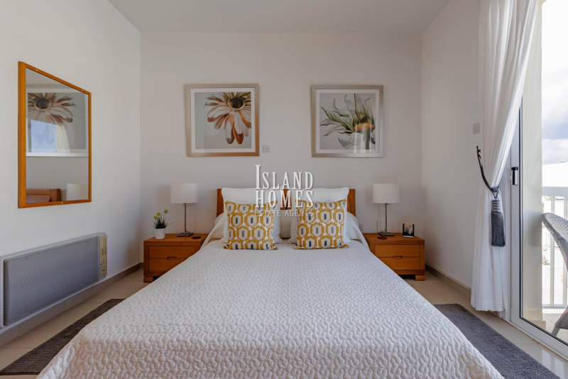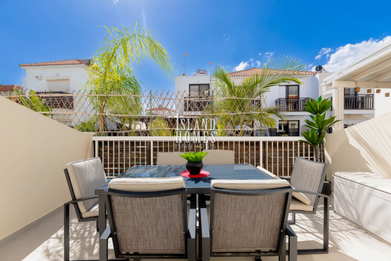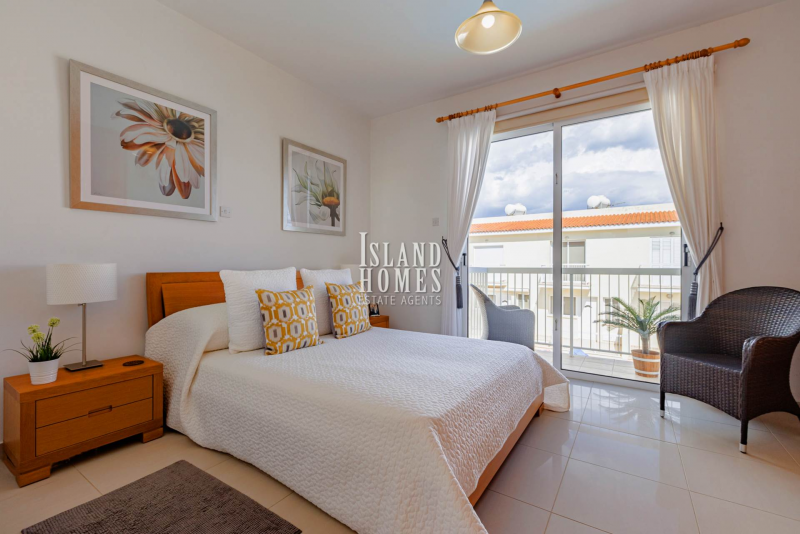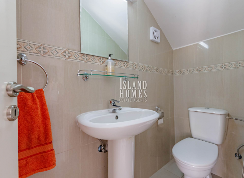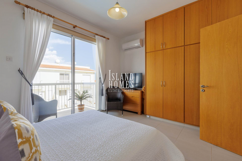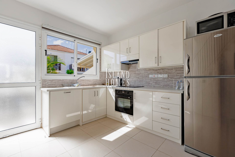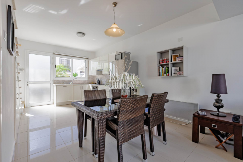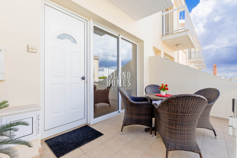 This beautifully presented town house is located in an enviable position just a few hundred metres walk to the beaches of Kapparis, with a gated entrance from the communal pool terrace leading to a raised front veranda. The front door leads into an open plan and stylish living, kitchen and dining area. The living area has patio doors and offers pool views. The modern kitchen is finished with neutral gloss cupboard doors and complimenting wall ceramics. The ground floor includes a handy guest WC and under stairs storage. From the kitchen is a door which offers direct access to the back veranda, a fabulous haven to enjoy al fresco dining with friends and family.