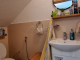 Ground floor: spacious living room with kitchen area, bathroom with toilet, and private yard;