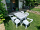 Each house has a private yard (123 sq.m.), and the complex features a shared swimming pool and a barbecue area with a gazebo.