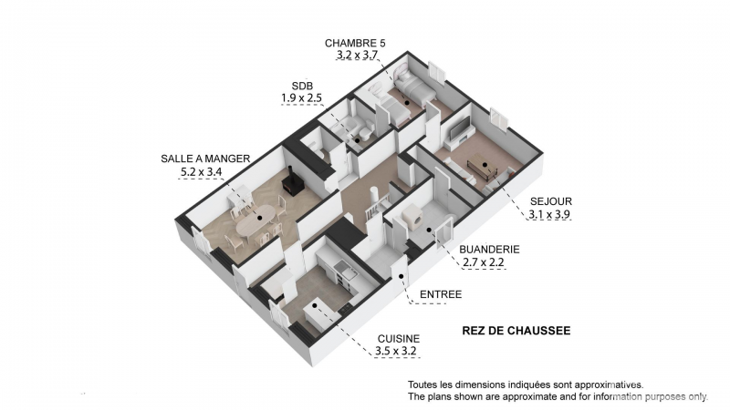 **Ground Floor:** entrance/boot area, fully equipped kitchen, dining room, cozy lounge/with vaulted ceiling, utility room, ski storage, twin bedroom with en-suite bathroom.