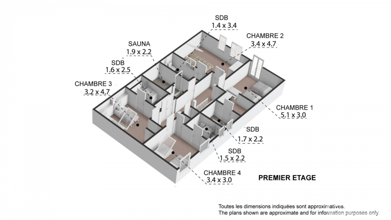 **First Floor:** Four remaining double bedrooms, each benefiting from its own private en-suite bathroom; one of these rooms also includes a practical mezzanine level with an additional single bed, sauna with an adjacent shower facility, offering a perfect relaxation space.
