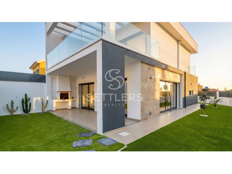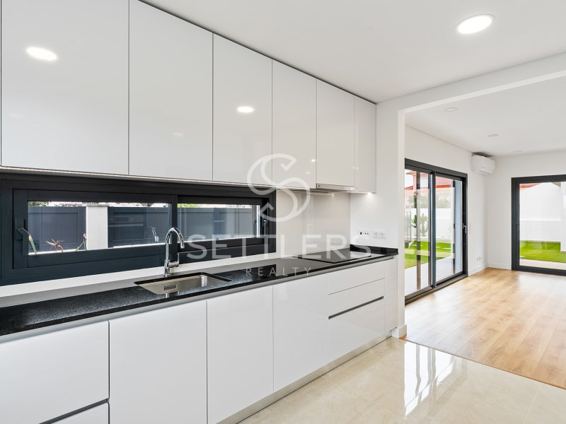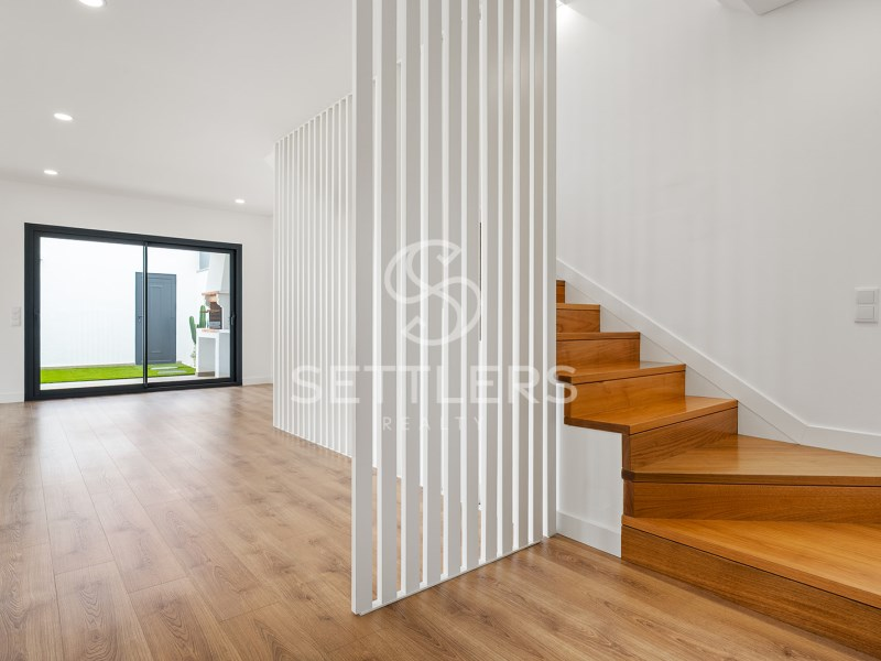 Semi-detached 2-bedroom house with private garden, set on a 222.50 m² plot in a residential area, carefully designed to offer a sophisticated lifestyle and located just 6 minutes from Oeiras Park.