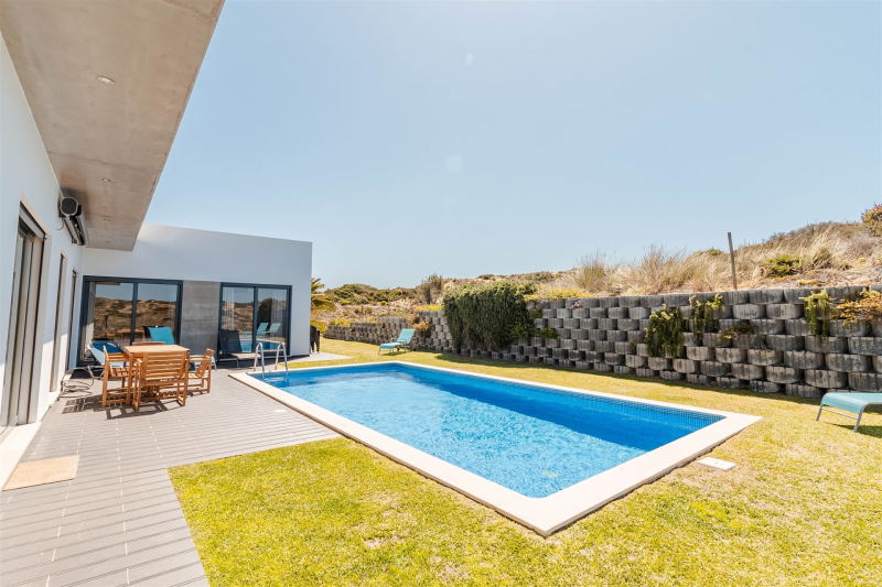 Functional and Elegant Interior Spacious living room with fireplace and direct access to terrace and pool Modern fully equipped kitchen with all appliances and pantry 3 bedrooms with built-in wardrobes, one en suite, all with garden and pool access 2 bathrooms Practical layout, ideal for families or rentalPerfect Outdoor Space Private pool Mature garden with barbecue area Large terrace, perfect for outdoor dining and leisure Open views over the dunes in a peaceful natural settingDream Location Just minutes from Bordeira Beach and Carrapateira center Quiet and safe area, ideal for permanent living or holidays Excellent access and natural surroundingsOther Features Individual electric heating Air conditioning Accessible for people with reduced mobility Energy certificate: B Rental history with active local lodging licensePerfect to live in or invest Looking for a modern villa near the beach with strong rental potential? This is the one.Book your visit now!