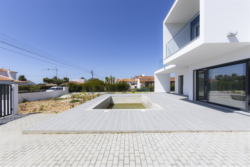 A modern, under-construction, 4-bedroom villa at Paisaigem Oceano, near Vale da Telha. The floor size of the house is 262m2 and the plot size is 794m2. The popular beaches, Praia da Arrifana, Praia Monte Clerigo, and Praia da Amoreira are within 5 minutes distance. Surfing, hiking, biking, and lots of other water -and nature activities are available in this area.