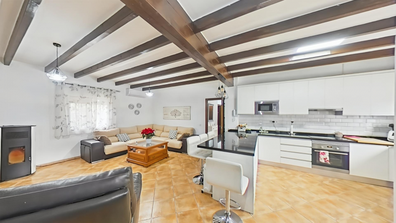Discover this charming renovated detached house, located in the quiet area of Arroyo Coche, Almogía. With a built area of 131 m2 and a plot of 1,081 m2, this home is perfect for those seeking a spacious and welcoming property. Its single-storey layout includes a bright living room integrated with an open-plan kitchen, ideal for enjoying family moments.~~The property features 4 double bedrooms, with the main bedroom standing out for its full en-suite bathroom. In addition, there is a versatile room that can be used as an office or sitting room, with direct access to the outdoors, providing a perfect connection with nature. A guest toilet and built-in wardrobes add further practicality to this home.~~The exterior is a true oasis, with landscaped areas featuring fruit trees and a porch where you can relax and enjoy the climate. There is also a parking area for several vehicles and its own water tank, ensuring comfort and self-sufficiency.~~Fully furnished with brand-new furniture, this house is ideal for those wishing to enjoy peace and nature without being far from the Costa del Sol and its beautiful beaches. Don’t miss the opportunity to make this your new home!