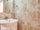 Moving to the first floor, on the bright stairs, you discover both bedrooms and bathroom. The bedrooms are double in size and each one includes fitted floor to ceiling wardrobes as well as offering patio door access to the shared veranda. With a lovely curved shape, this veranda is ideal for morning coffee or late nights in the summer with a good book. The bathroom is finished in neutral tiles and boasts a bathtub with over bath shower, WC and sink with vanity unit, ideal for extra toiletries and towels.