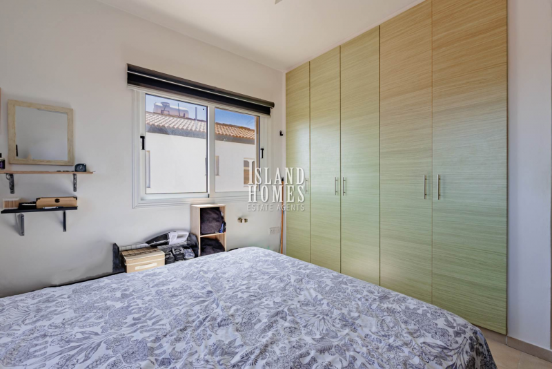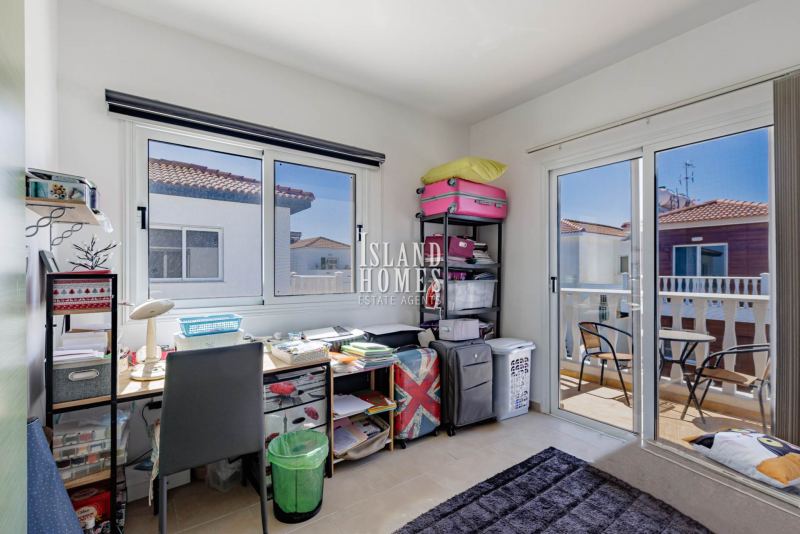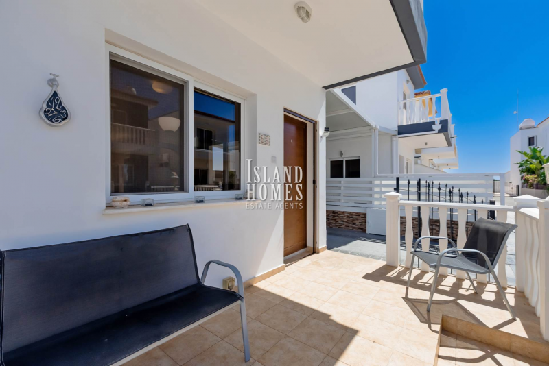 The plot offers garden and patio space at both the front and the back of the house, as well as off street, covered parking. The back garden is fenced for privacy and security and has an electric awning. Offered for sale part furnished this is a fantastic opportunity to own a town house on the outskirts of the popular village of Frenaros with the village of Deryneia also a short drive away. The nearest supermarket is less than 1.5km from the complex. This property would make a super retire to the sun home or a great long term rental opportunity.