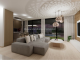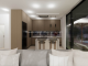 The contemporary kitchen is designed with practicality in mind and includes a central island that also serves as a convenient breakfast bar, making it an ideal spot for casual dining, morning coffee, or entertaining while cooking. The living area benefits from large patio doors, allowing plenty of natural light to flood the space while providing direct access to the garden, creating a wonderful connection between indoor and outdoor living.